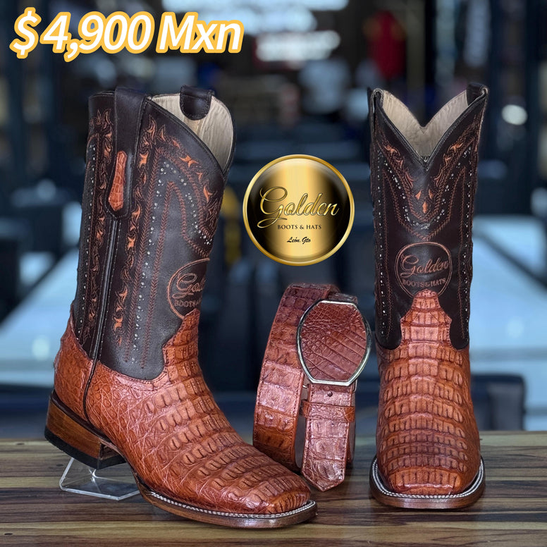 Bota Bulldog Golden Cocodrilo Lomo Coñac