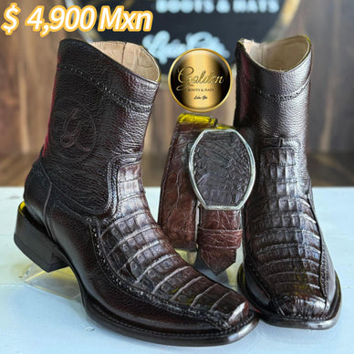 Botín Golden Cocodrilo Panza Café Con Cinto